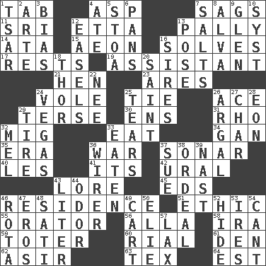 64. Eastern Standard Time (abbr.)